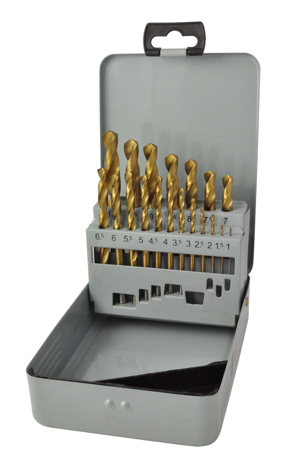 19-tlg. Spiralbohrer-Satz, DIN 338N, HSS, TIN-beschichtet