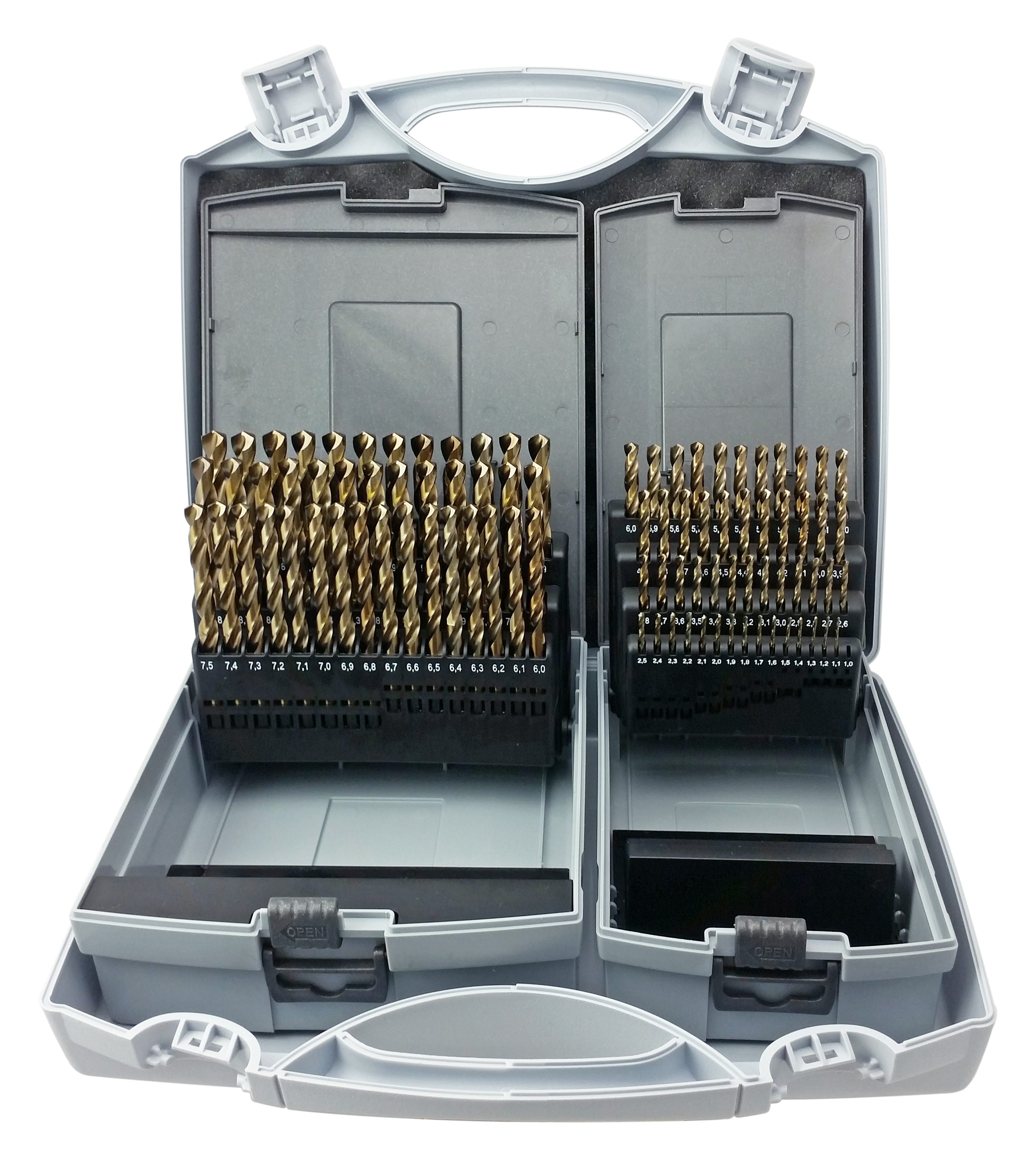 92-tlg. Spiralbohrer Satz HSS, HSSG, HSSE Bohrer DIN 338, rollgewalzt, geschliffen oder CO Cobalt,