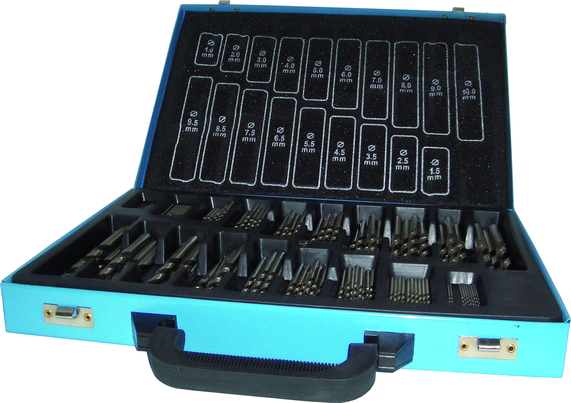- in Metall-Magazin, blau, 170-teilig, 1,0 - 10,0 x 0,5 mm steigend, je 10 Spiralbohrer 1,0-8,0 x 0,5 mm steigend, je 5 Spiralbohrer 8,5-10,0 x 0,5 mm steigend