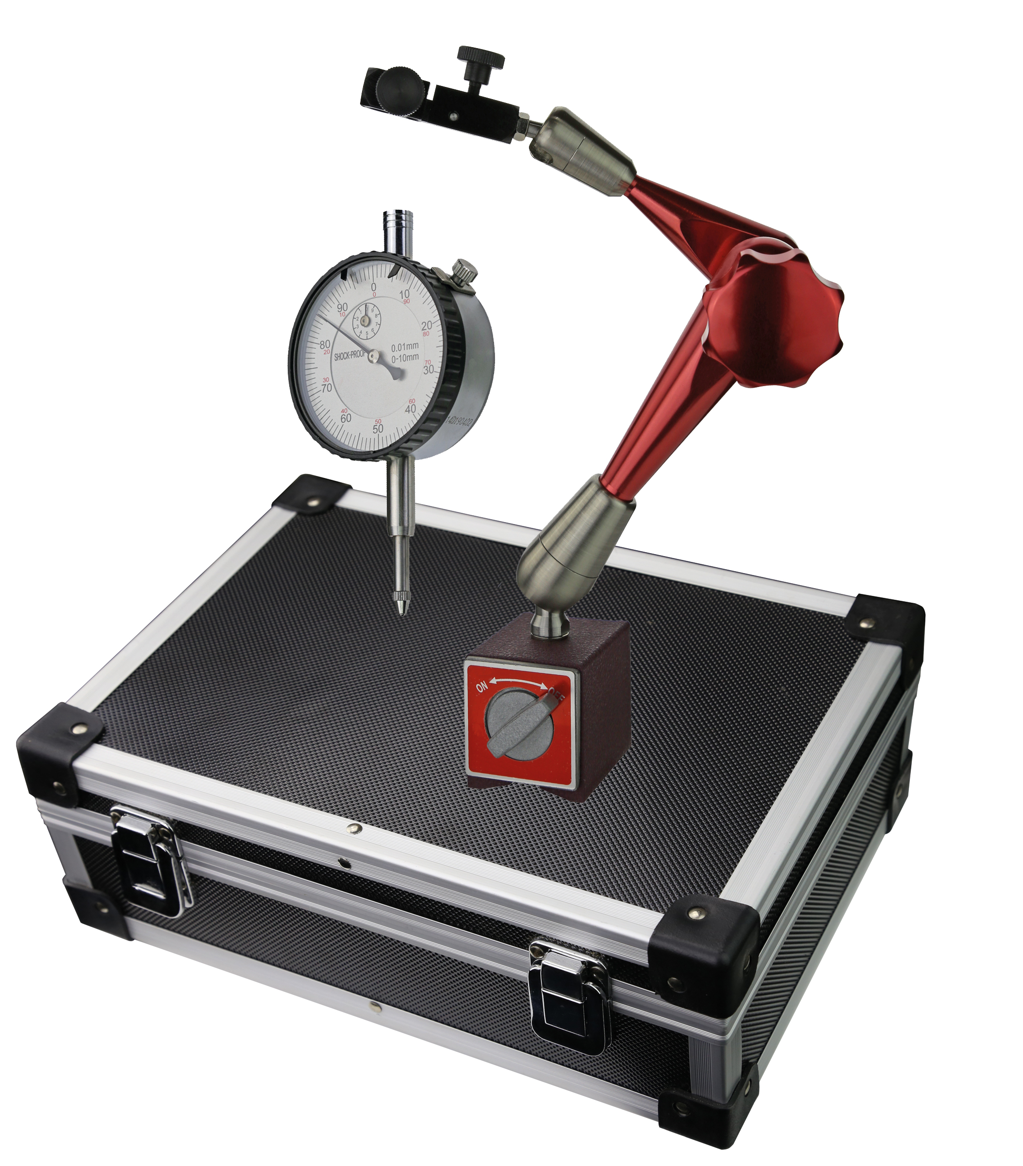 Dial indicator with magnetic support-setin aluminium case ( 31.5 x 22 x 11.5 cm)