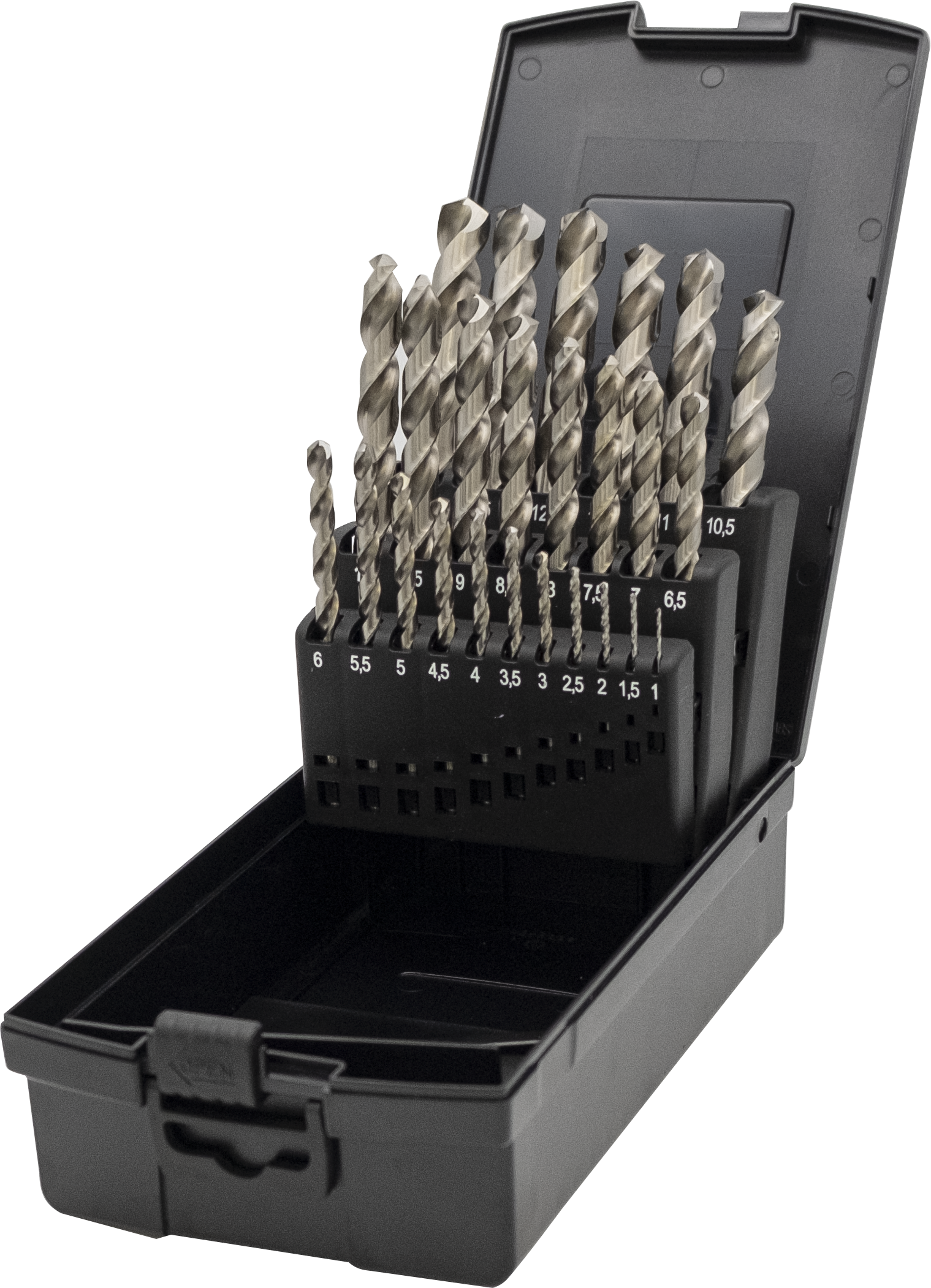 Produktinformationen "PROFI-DIN 338 Spiralbohrer,Typ VA, HSS-Co5, profilgeschliffen, blank, Rose- Kunststoffkassette"