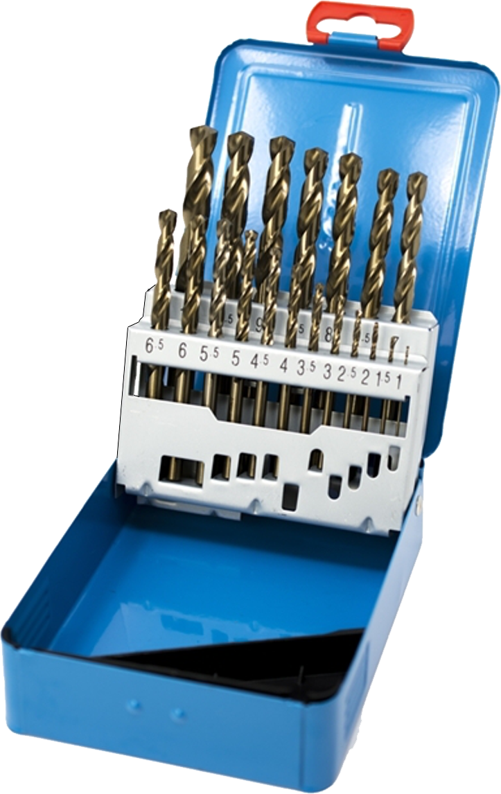 Produktinformationen "Spiralbohrer DIN 338 NHD geschliffen,HSSECO5, bronze135°,Kreuzanschliff,19/25tlg"